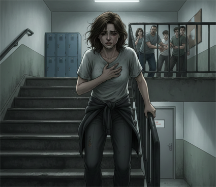 Um soco no rosto e alguns chutes. Poderia ter sido pior se não fosse o coordenador e alguns alunos separando. Saiu correndo ofegante, descendo as escadas com as pernas trêmulas, segurando choro para ninguém perceber. O banheiro estava vazio, ainda bem, mas a notícia já havia se espalhado por toda a escola. Naquele instante era apenas a professora que havia apanhado de aluno.